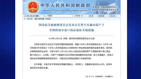 中美贸易摩擦暂时性缓和